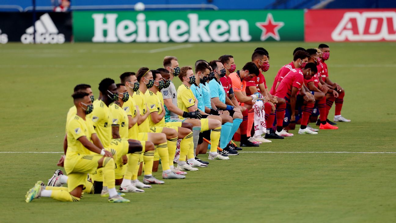 FC Dallas announced that players will remain inside their locker rooms for the playing of the national anthem prior to Sunday’s match against Nashville SC (stream live on ESPN+ in the U.S.), though there will be a moment of silence to promote racial equality.
