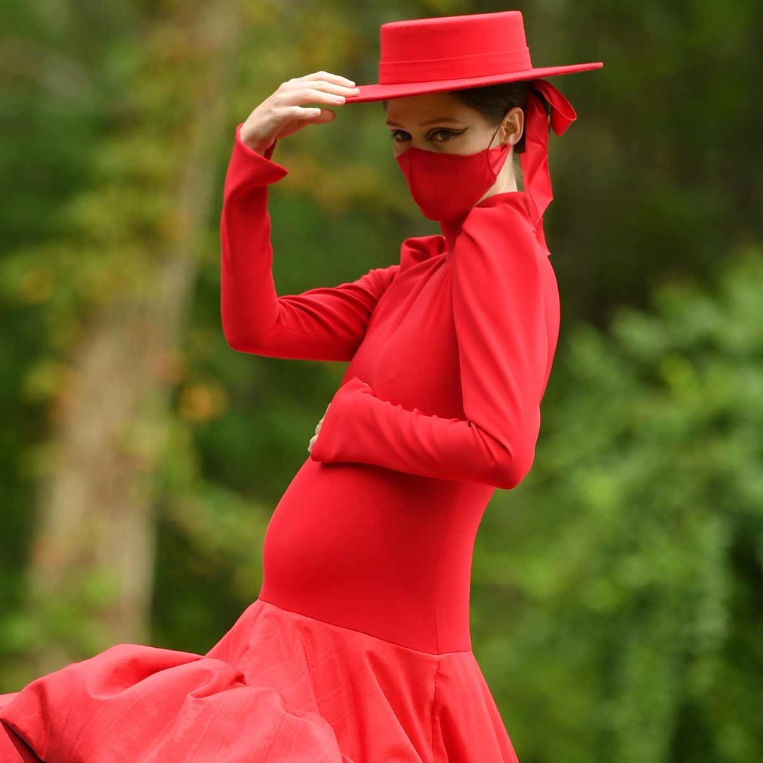 Dressed in a red, over-the-top gown that flowed behind her, the 32-year-old expertly walked across Christian’s grassy backyard, before coming to a stop on a tiny bridge built across a pool. Like the models before her, Coco struck a pose at that point, but rather than strut away, the mommy to be decided to walk into the water wearing the dress, mask and hat that Siriano designed—Sarah Jessica Parker supplied the shoes.