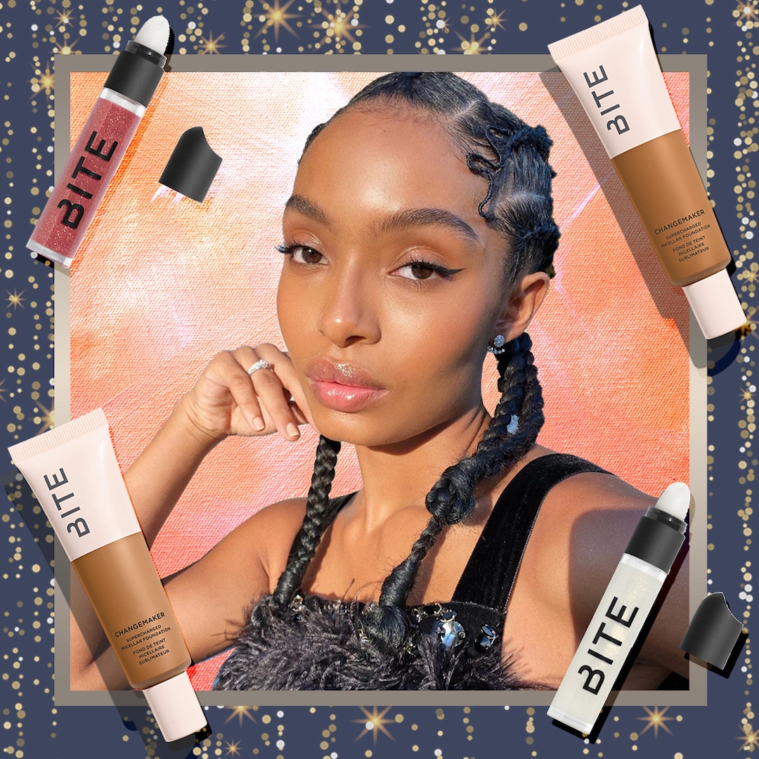 And catch the light they did, thanks to a combo of two shades of Bite Beauty’s Changemaker Supercharged Micellar Foundation, and two juicy, glittery shades of Bite Beauty’s new Yaysayer Plumping Lip Gloss. To recreate Shahidi’s look for yourself at home, shop the goodies Cheng used and follow the steps below!