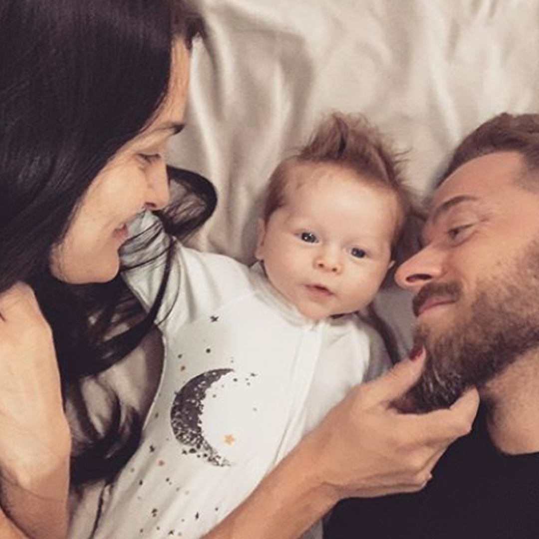 The Total Bellas star shared a collage of four cute and candid selfies of her, Artem and Matteo lounging in bed and smiling cheek to cheek.