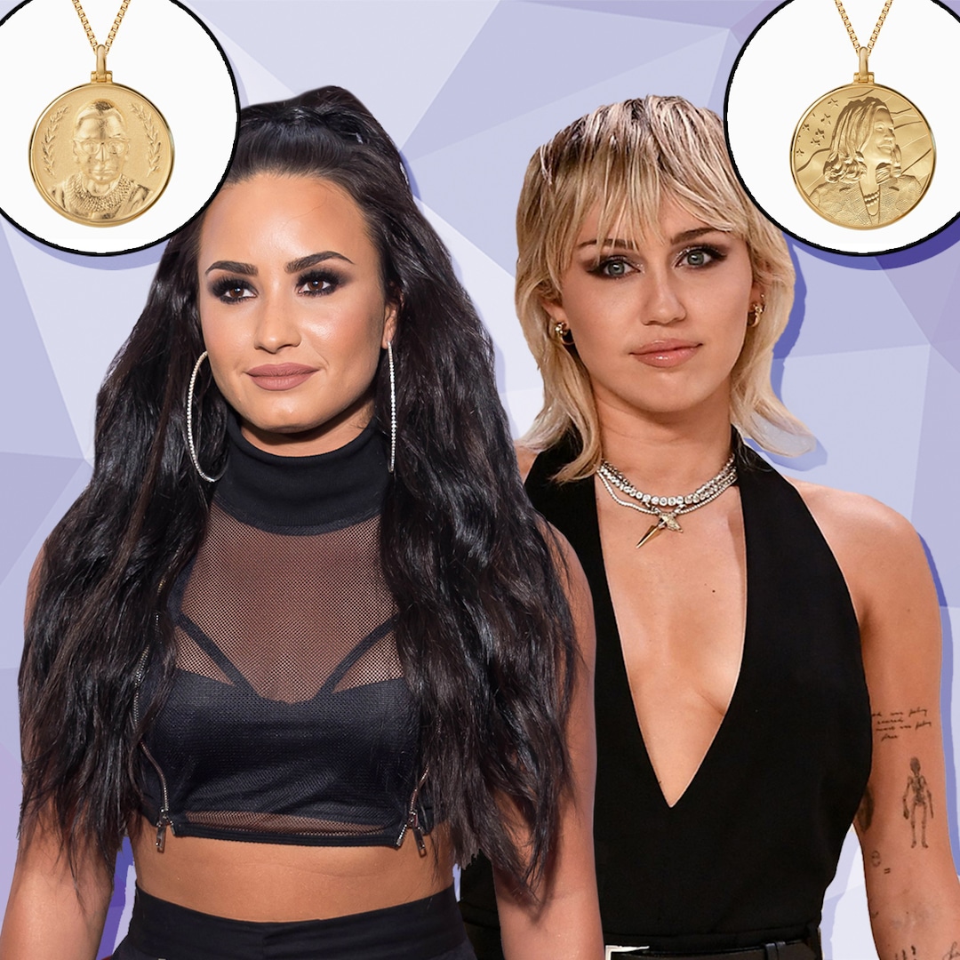 Like many celebrities using their platforms and wardrobes to encourage fans to vote, Cardi B, Demi Lovato and more stars have recently worn Awe Inspired’s medallion necklaces featuring inspiring women like Ruth Bader Ginsburg and Harriet Tubman. In her Instagram live with VP candidate Kamala Harris, Miley Cyrus donned the Kamala Harris pendant. How fitting!