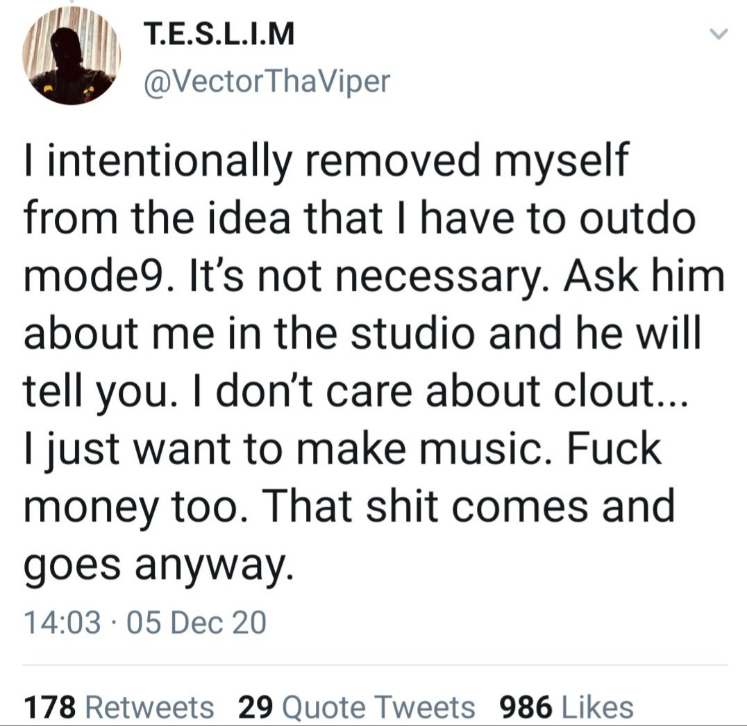 He added that he’s grown now and awards don’t mean anything to him anymore. He stated that he doesn’t care about money or clout and only wants to make music.