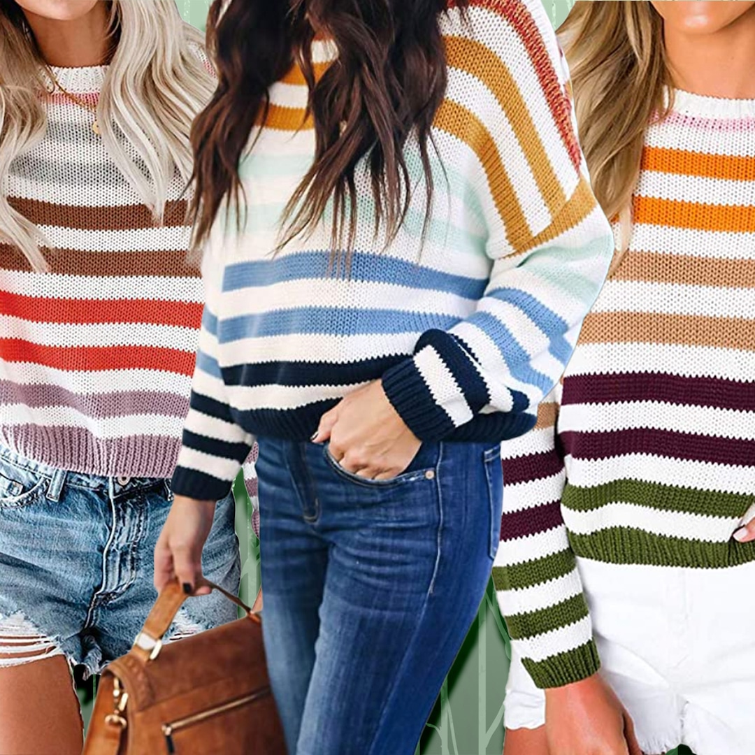 Sweater weather is here, but that doesn’t mean having to wear dull colors to match the gloom outside. Reviewers are loving the cheery rainbow striped Zesica Long Sleeve Crew Neck Pullovers on Amazon right now that are only $30. They come in a variety of retro, rainbow colorways and are super comfortable.