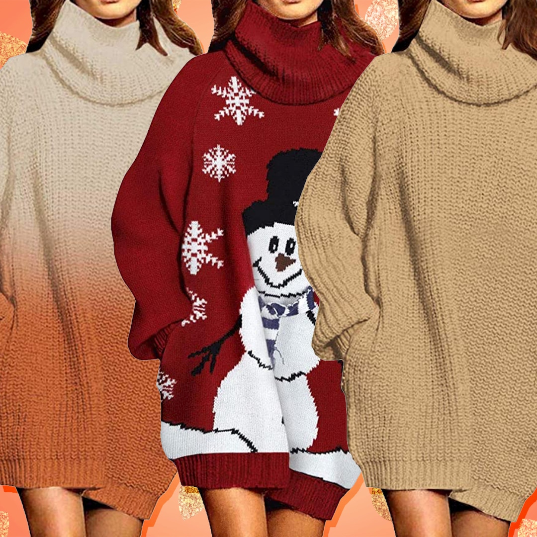 “Cozy & pretty color! I have a curvy athletic body shape & usually wear a size small, but got a medium so I could feel like I’m wearing a chic blanket lol – love it!”