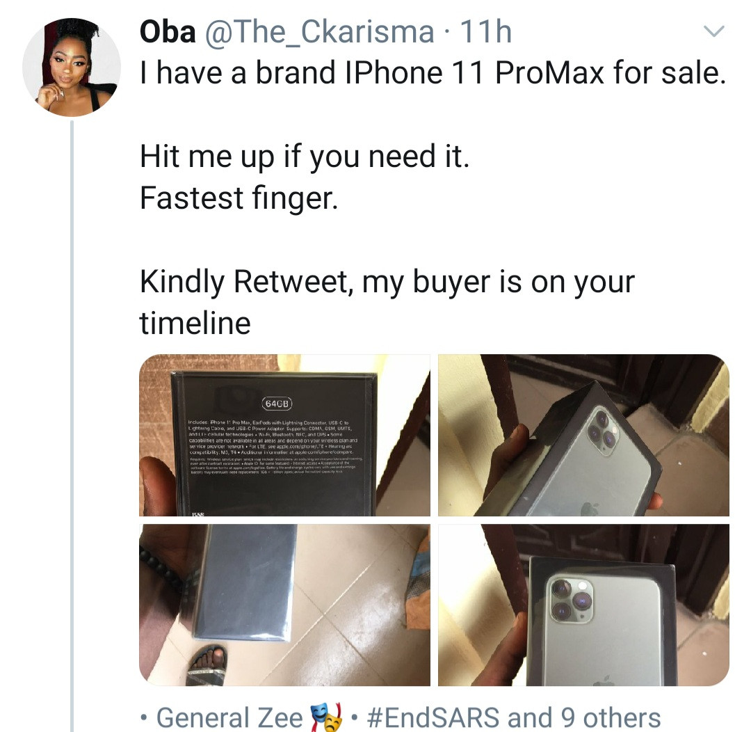 She initially took to Twitter to reveal that her uncle brought back multiple iPhone11 Pro Max phones and she’s looking for buyers.