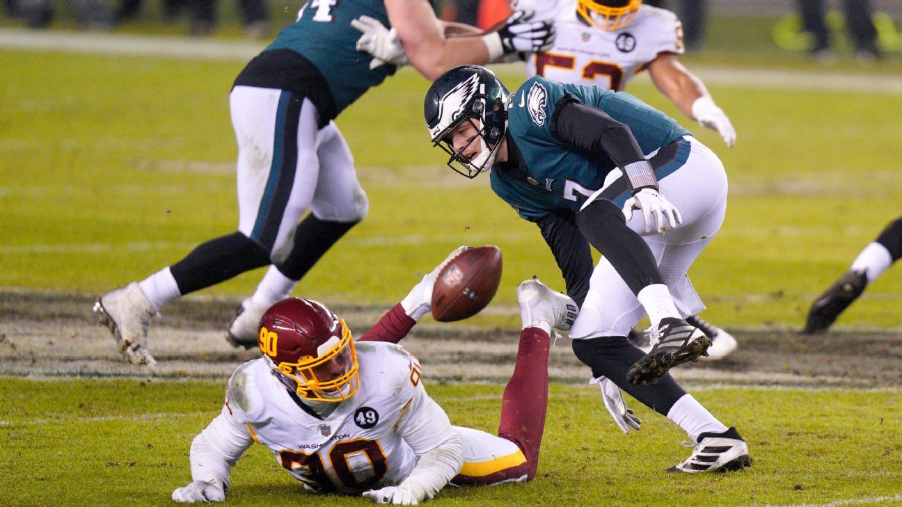 The Eagles’ 20-14 loss to Washington secured the No. 6 overall pick in April’s NFL draft. A victory would have dropped the Eagles to No. 9 overall, so there was plenty of incentive for Philadelphia to end up with a loss. Also, a win by Philadelphia would have given the Giants the NFC East title and a ticket to the NFL playoffs. Washington earned the division title and advanced.