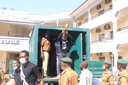 The activists were brought to court in a Black Maria with handcuffs on their hands – a situation which led to an altercation between the prison officials and their lawyer, Marshal Abubakar.