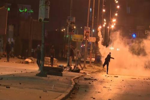In the working-class neighbourhood of Ettadhamen on the edge of the capital Tunis, young men hurled rocks at riot police who responded with volleys of tear gas.