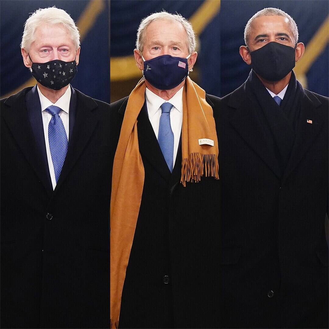 The presidents praised Biden’s leadership qualities and spoke of the need to unite the country during what Clinton called an “unusual” time.