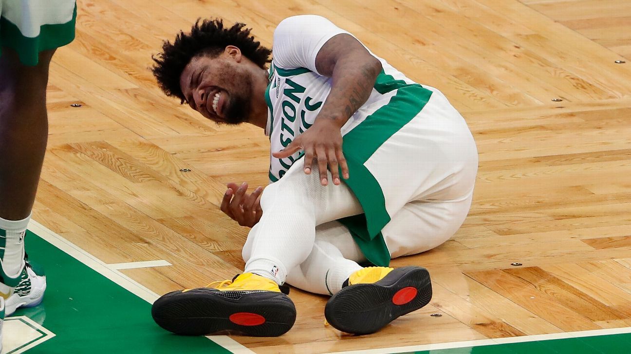 After Boston called timeout, Smart stayed down for a bit before eventually being helped off the court and immediately back to Boston’s locker room by two people on Boston’s staff. He put no weight at all on his left leg while being helped off.