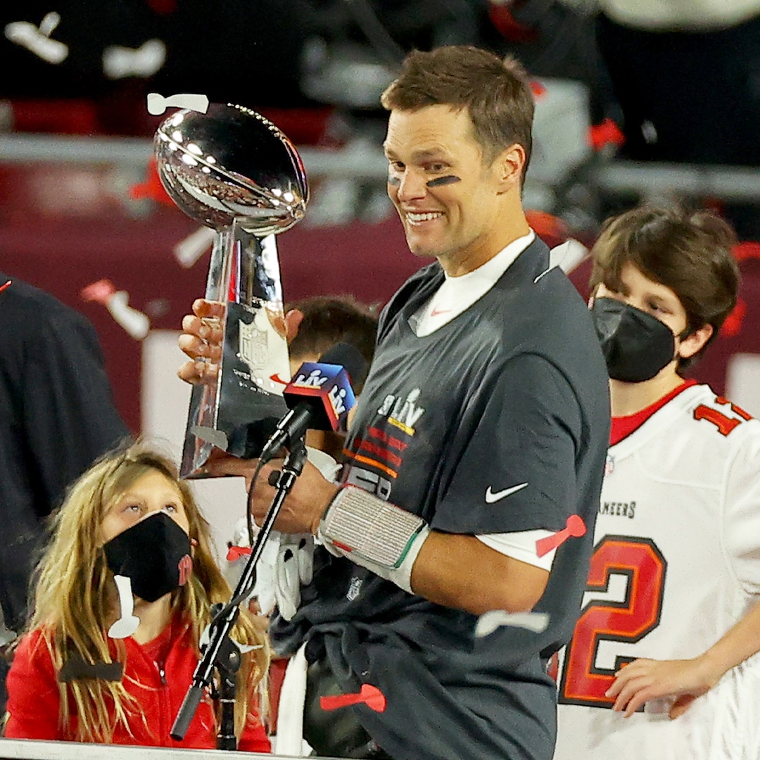 In this photo, Brady and Tyrann Mathieu can be seen exchanging a few words after a penalty was called.