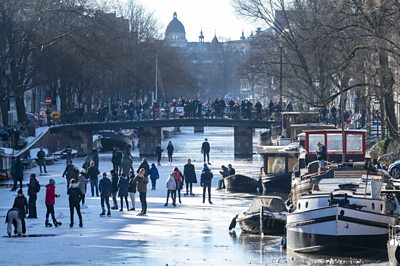 Freezing temperatures have made canals, rivers and lakes ideal for outdoor skating, a popular activity which has drawn crowds in the Netherlands.