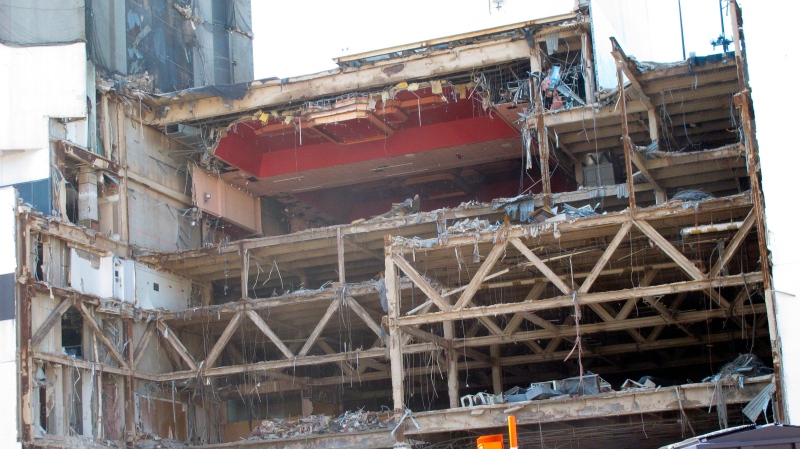 But go, it will, at 9 a.m. Wednesday. Demolition crews have positioned explosives at strategic points along the building’s support structures designed to knock its legs out from under it, bringing the building down on itself, with the debris falling in a slightly north-northeast direction, Fire Chief Scott Evans said.