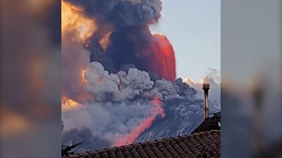 Mount Etna has erupted, sending hot lava and smoke clouds into the sky.
