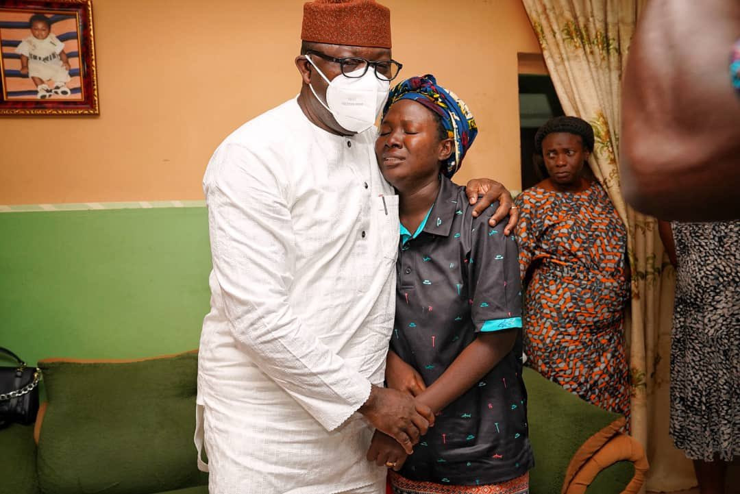 The Ekiti State governor, Kayode Fayemi, on Tuesday morning, February 23, paid a condolence visit to Omolola Olawunmi, wife of Flight Sergeant Olasunkanmi Olawunmi who died in the Air Force plane crash on Sunday, February 21.