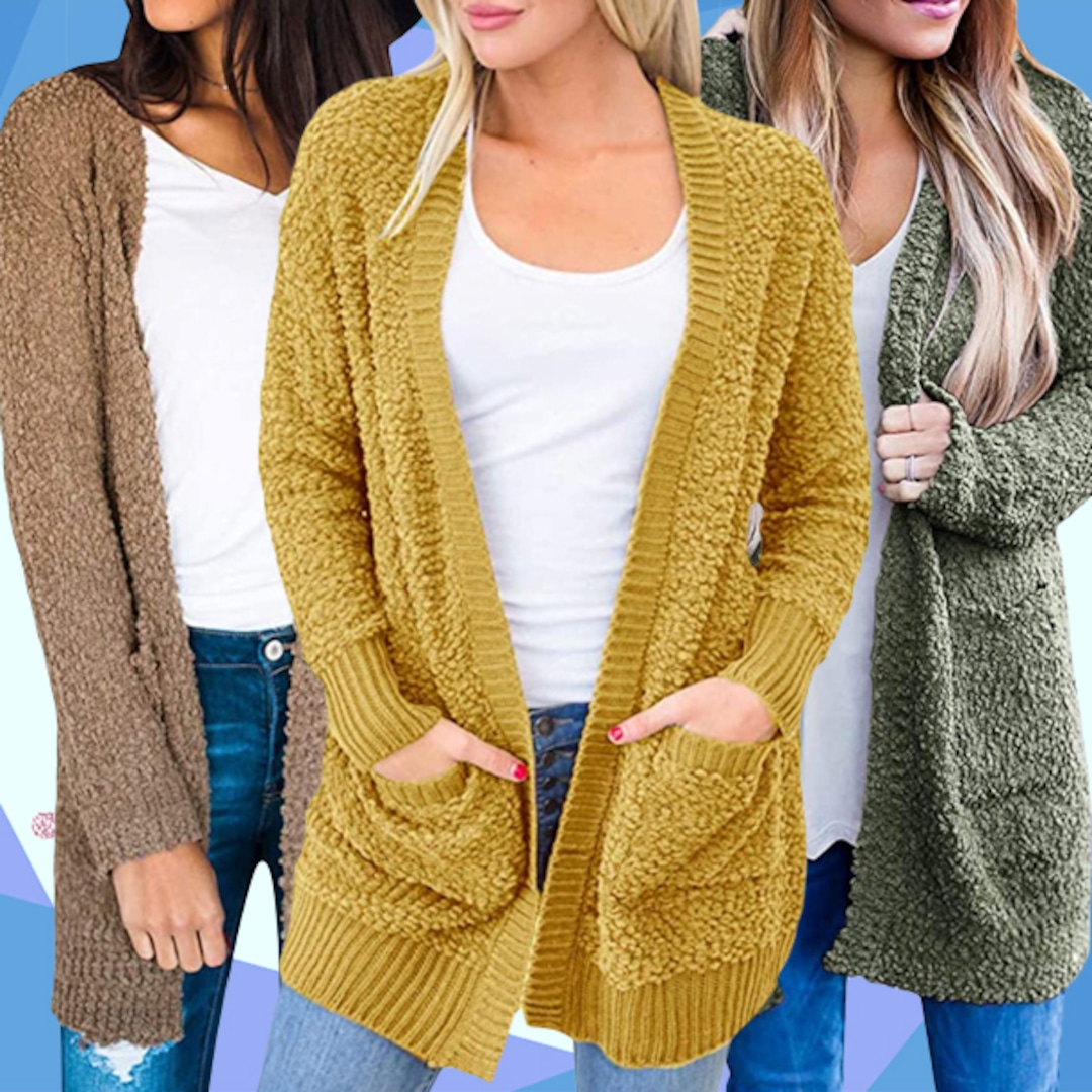 “Love love love this Cardi!!! It’s super soft and feels warm,” writes another. “I am not a brown/tan person so I thought I’d broaden my closet a bit and the color is beautiful. I will DEFINITELY be buying this again in Another color. I’m 5’5″ 145lbs and wear a size 10 and I ordered a Medium and it’s perfect.”