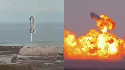But that wasn’t the end of the story. A fire then developed around SN10’s base and eight minutes later it exploded on the landing pad in Boca Chica, Texas.