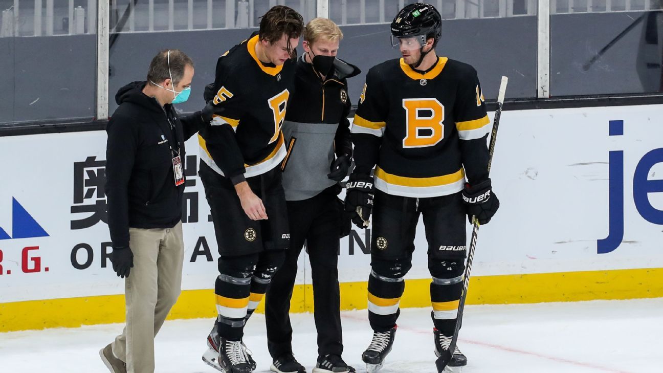 The music went silent in the empty arena after Carlo was hurt, and the Bruins’ bench could be heard cussing out Wilson. When Carlo finally got to his skates, the only noise was his teammates banging their sticks against the boards.