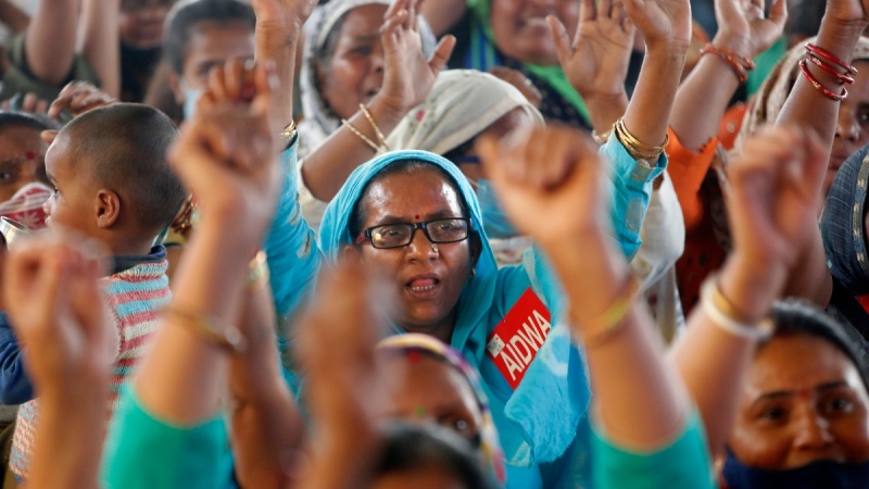 “Today we are finding ourselves under attack at all fronts. As women, as peasants, as workers, as youth and students,” said women rights activist Sucharita, who uses one name. “We are opposed to the laws that have been passed in favour of corporations.”