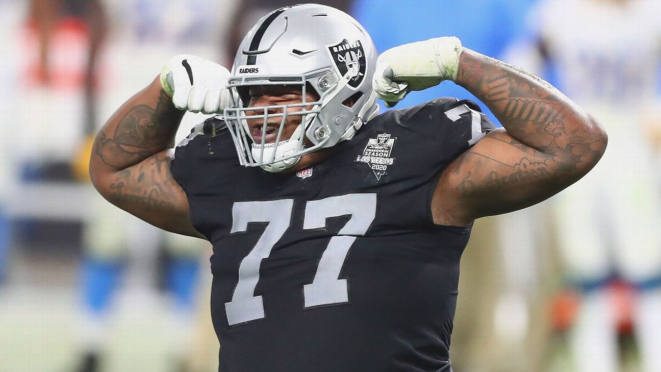 FOXBOROUGH, Mass. — The New England Patriots will be acquiring offensive tackle Trent Brown from the Las Vegas Raiders in a trade after agreeing to a restructured one-year contract worth up to $11 million with him, sources tell ESPN’s Field Yates.