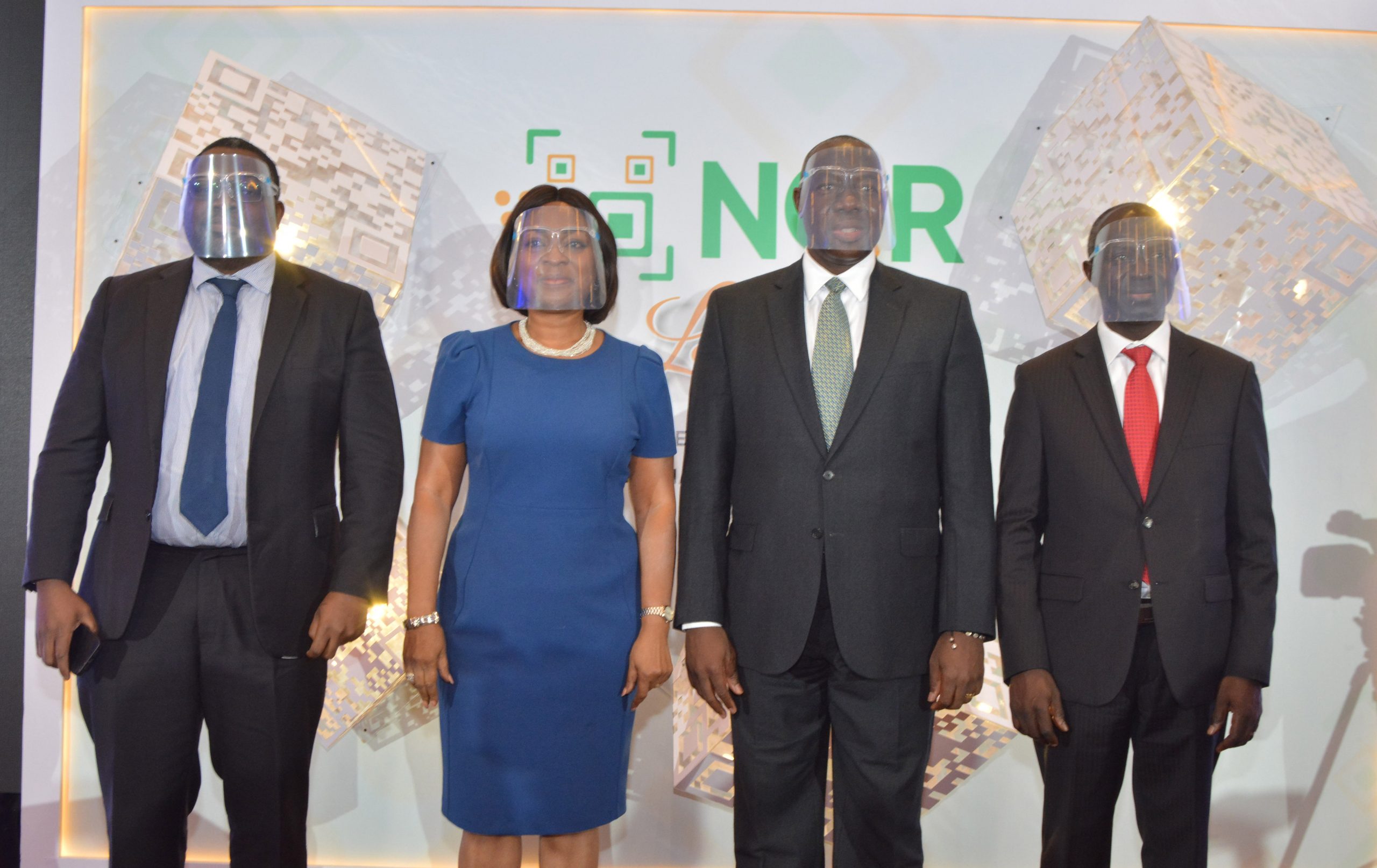 L-R: Temidayo Adekanye, Chief Risk Officer, Nigeria Inter-Bank Settlement System (NIBSS); Christabel Onyejekwe, Executive Director, Business Development, NIBSS; Premier Oiwoh, Managing Director/CEO, NIBSS and Niyi Ajao, Deputy Managing Director, NIBSS at the official launch of the Nigeria Quick Response (NQR) payment solution powered by NIBSS on Monday 15th, March 2021 in Lagos.