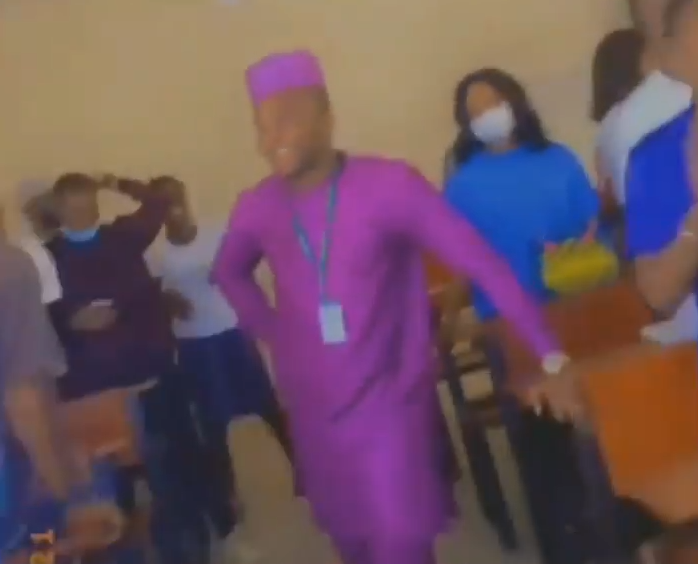 The students sang a happy birthday song for the lecturer who has been identified as Dr Dele.