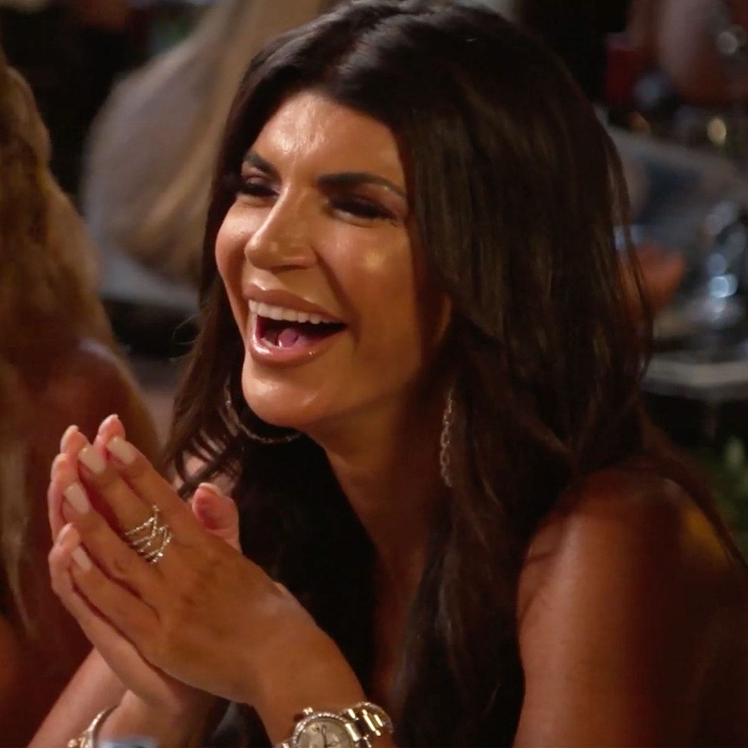 Teresa Giudice is on the hunt for a man in this exclusive sneak peek at tonight’s brand new The Real Housewives of New Jersey. The hilarious clip shows Teresa at dinner with brother Joe Gorga, sister-in-law Melissa Gorga and friends and the conversation turns raunchy when Teresa orders some pineapple juice.