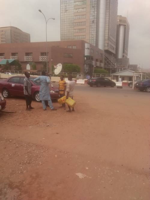 Black marketers have relocated to the Nigerian National Petroleum Corporation Headquarters, Abuja, selling fuel to motorists opposite the towers at exorbitant prices and in brazen fashion.