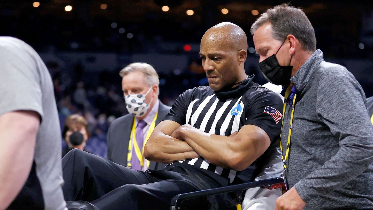 Official Bert Smith was alert as he was placed on a stretcher and moved off the court at Lucas Oil Stadium. The TBS broadcast said that Smith reported feeling lightheaded and was being tended to in the locker room.