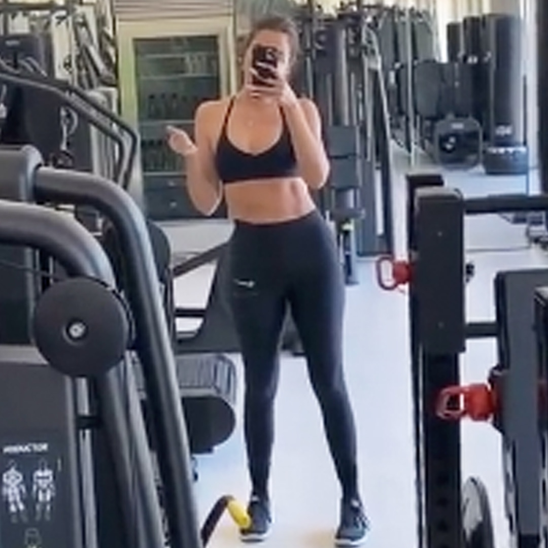 Khloe Kardashian is brushing off her leaked bikini photo by hitting the gym.
