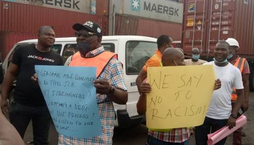 The placard-carrying workers shut the terminals to businesses, accusing the terminal operator of flagrant abuse and breach of Nigerian content law.
