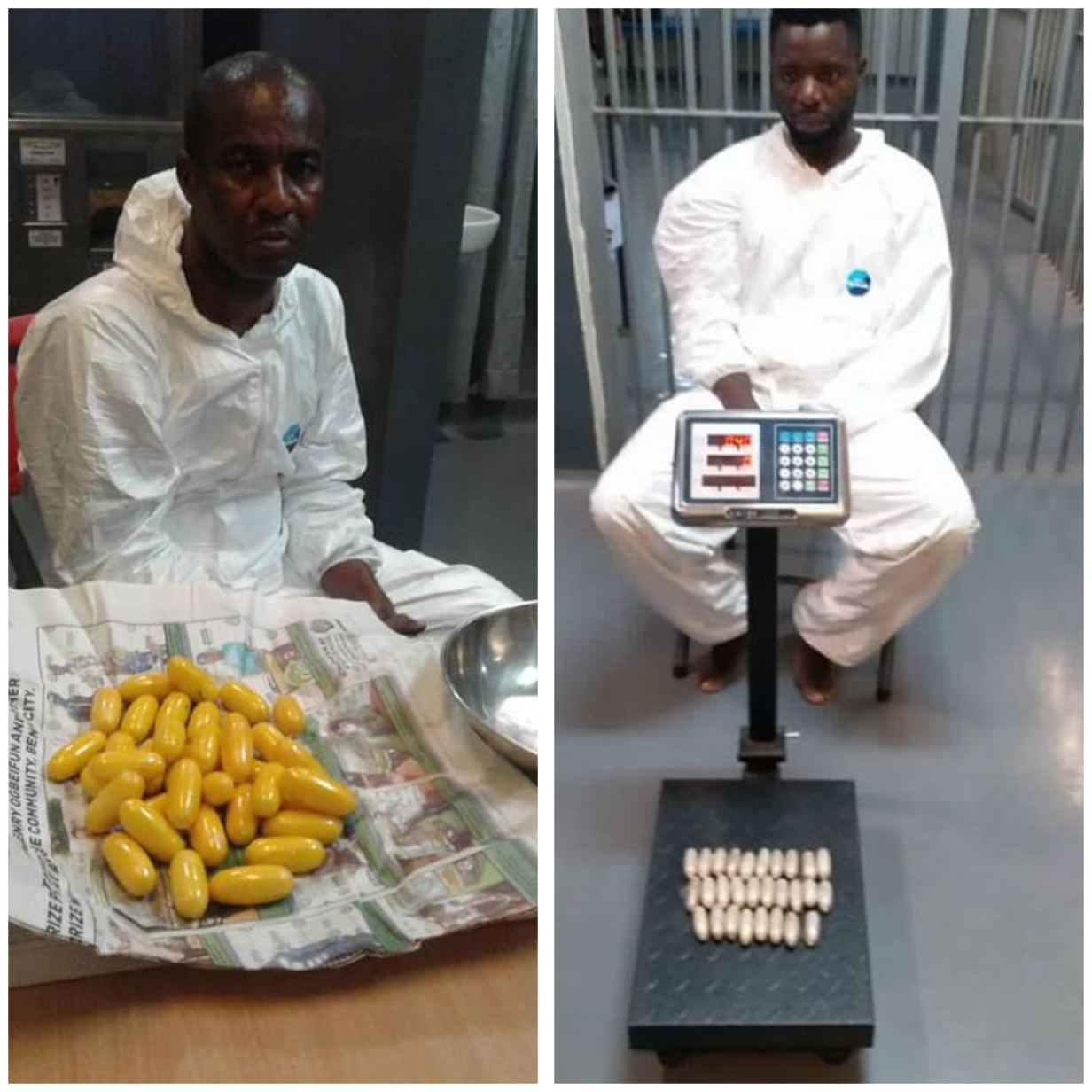 Two suspected drug traffickers intercepted by operatives of the National Drug Law Enforcement Agency (NDLEA) at the Murtala Muhammed International Airport, MMIA, Lagos, have excreted 191 pellets of cocaine, heroin.