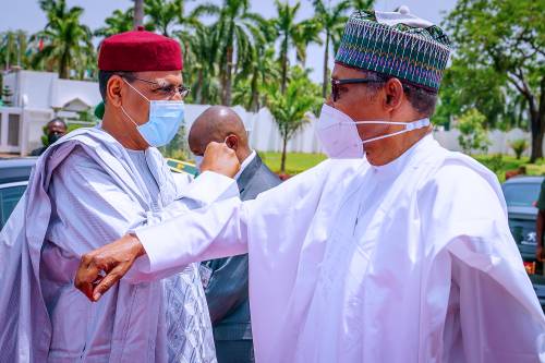The visiting Nigerien leader, who is on a two-day official visit to Nigeria, was received by President Buhari at the forecourt of the Villa around 1.22p.m.