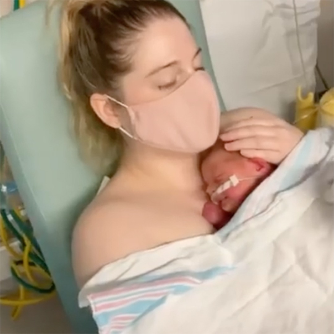 But as it turns out, the journey home wasn’t smooth sailing. Meghan recently posted a TikTok video, set to Forest Blakk‘s “If You Love Her” featuring herself, showing Riley in the first days of his life, hooked up to tubes and monitors while being treated in a hospital’s NICU. And she was not always allowed to be with him there. Some scenes show her crying as she watches him remotely through Facetime.