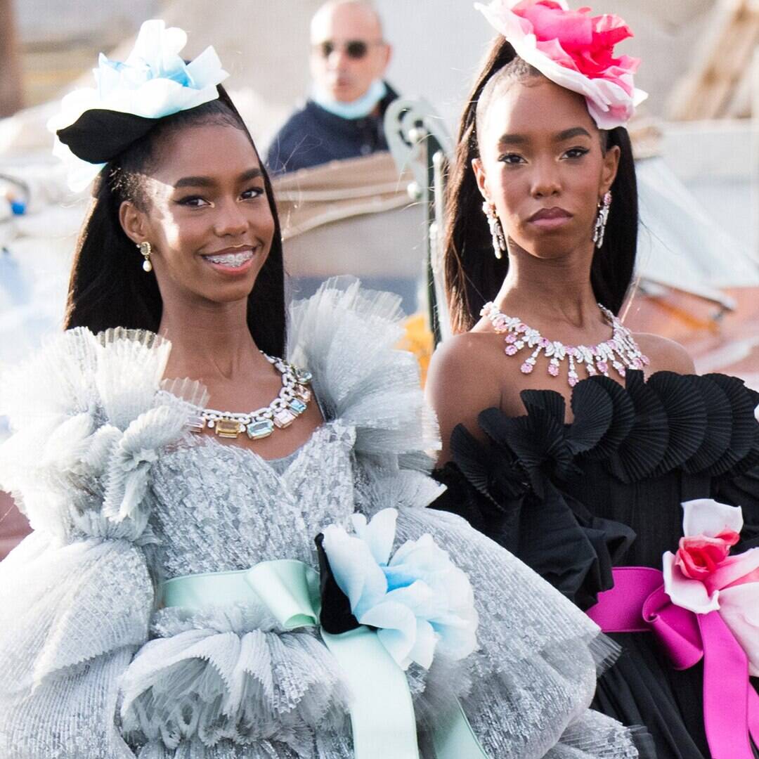The teens arrived at the venue on a gondola, before walking the runway in their contrasting looks. D’Lila wore a short light blue and white dress, which was accessorized with a blue flower fascinator. Jessie sported a similar dress, but hers was black and featured pink accents.