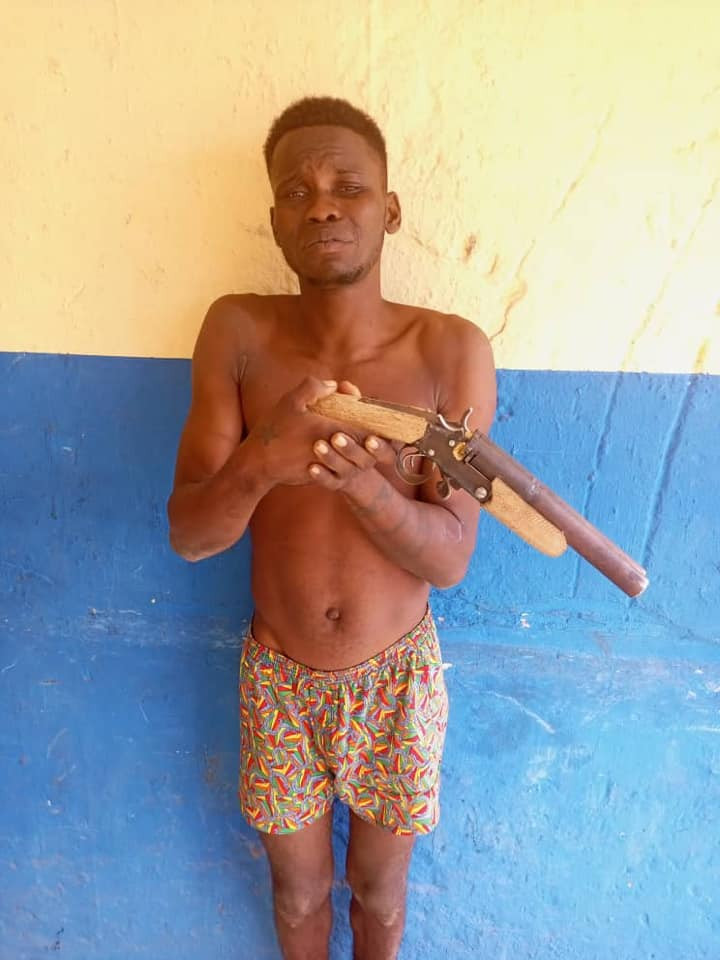 “Upon reasonable suspicion they were searched and during the search, one cut-to- size locally made double barrel gun was recovered from one of the passengers named oghenenyerhovwo solomon ‘m’ of uruegbe street okpara. He was promptly arrested and the motorcycle impounded while the two (2) others escaped into the bush. Efforts to arrest the two suspects at large are being intensified.”