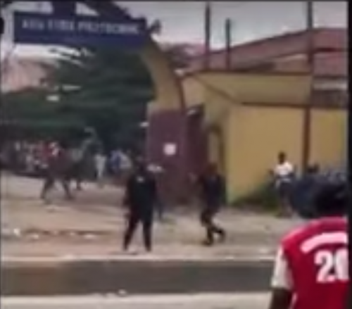 Some policemen have been captured on camera opening fire on protesting students in Abia State Polytechnic, Aba.