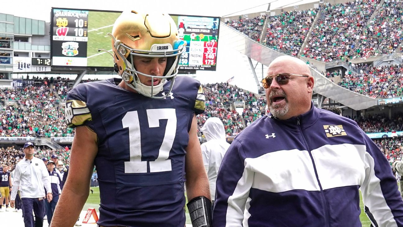 With true freshman Tyler Buchner, who played briefly in the past two games, unavailable due to a hamstring injury, second-year quarterback Drew Pyne replaced Coan and passed for 81 yards and a touchdown.