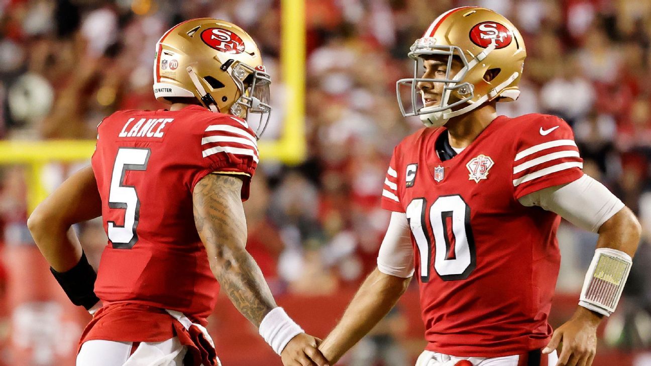 Garoppolo, meanwhile, has had his ups and downs for the 2-1 Niners. Despite the slow starts, he ranks 13th in the NFL in total QBR (56.9), 19th in passing yards (760) and tied for 18th in touchdown passes (four). He also has run for a score, thrown an interception and lost a pair of fumbles.
