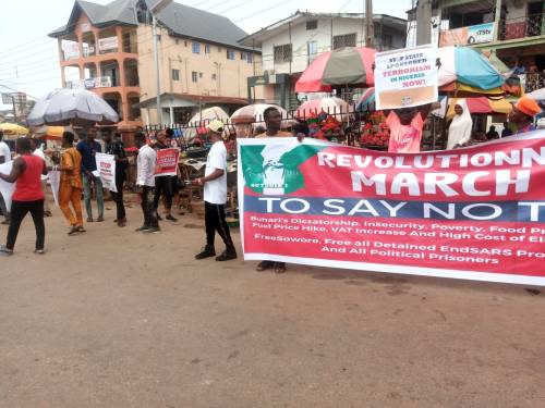 Some protesters under the aegis of #RevolutionNow Movement have taken to the streets of Osogbo, the Osun state capital, to protest against the detention of agitators across the country.