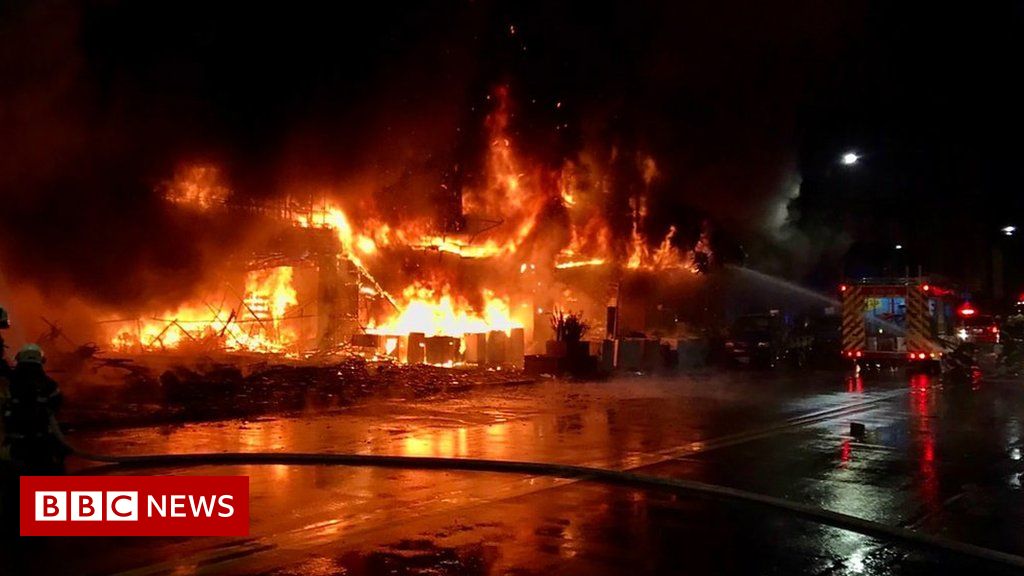 It took firefighters more than four hours to extinguish the blaze at the building in the city of Kaohsiung.