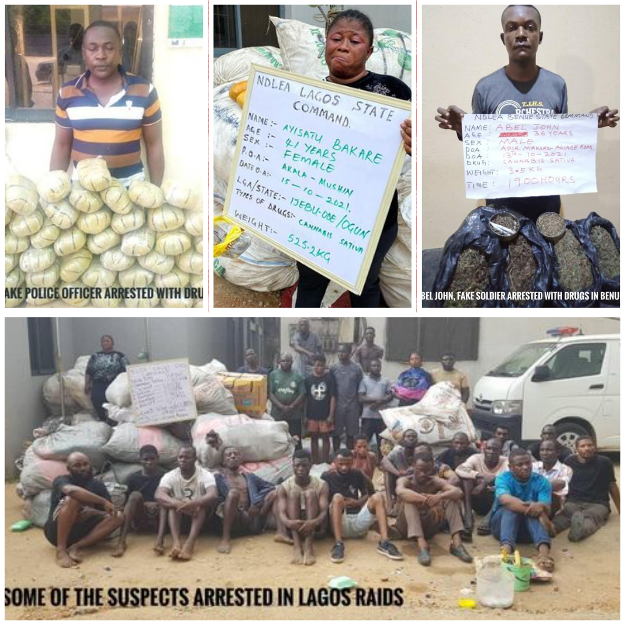 A fake police officer, a soldier as well as a youth corps member are among 663 drug traffickers and users arrested when operatives of the National Drug Law Enforcement Agency raided notorious drug joints in Lagos, Abuja, Benue and other parts of the country.