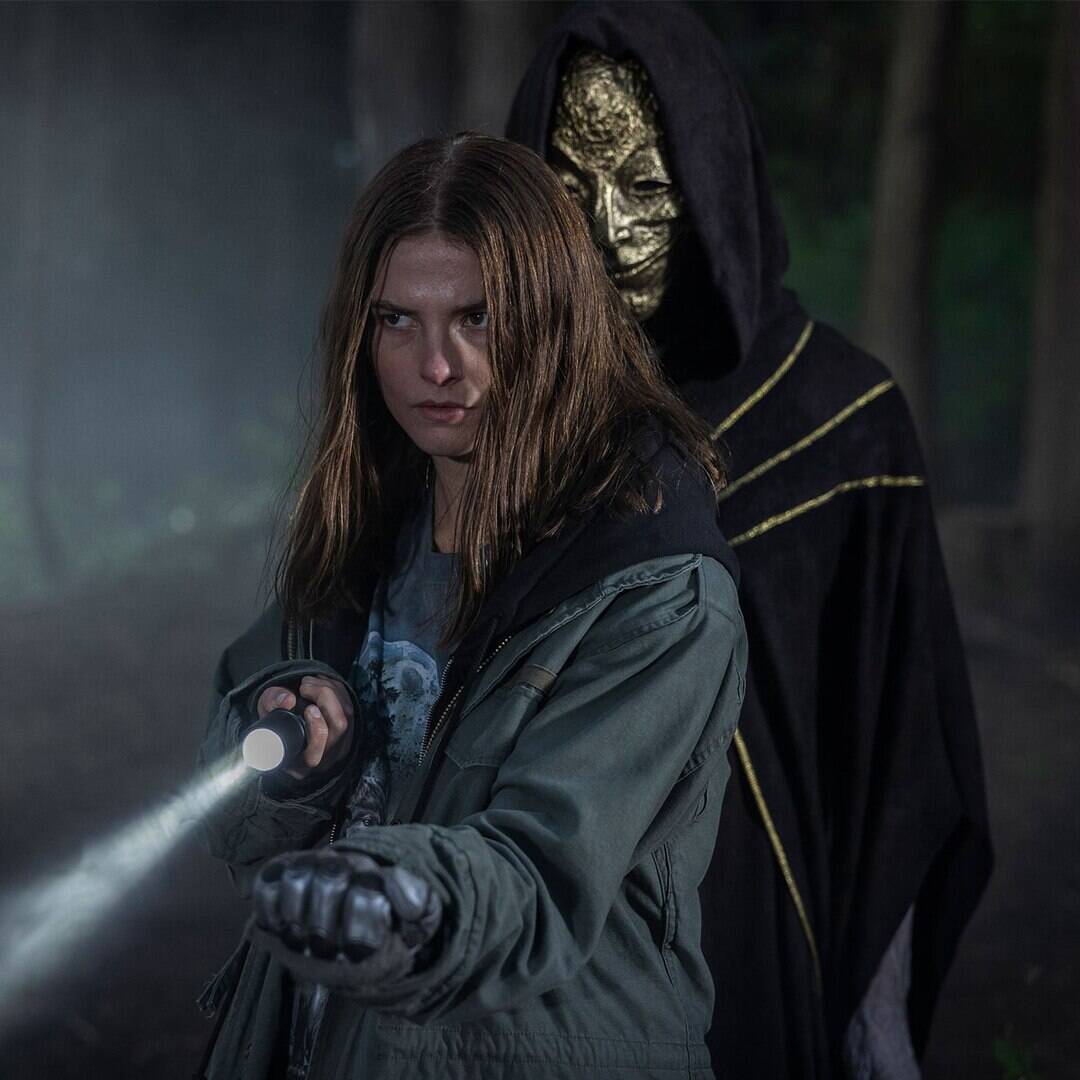 Krysten Ritter directed the first four episodes of the eight-part series, premiering on Peacock this Thursday, Oct. 21. The former director and star of Jessica Jones also served as co-executive producer of The Girl in the Woods, which is based on Crypt TV’s 2018 short film The Door in the Woods and the 2020 sequel of the same name.