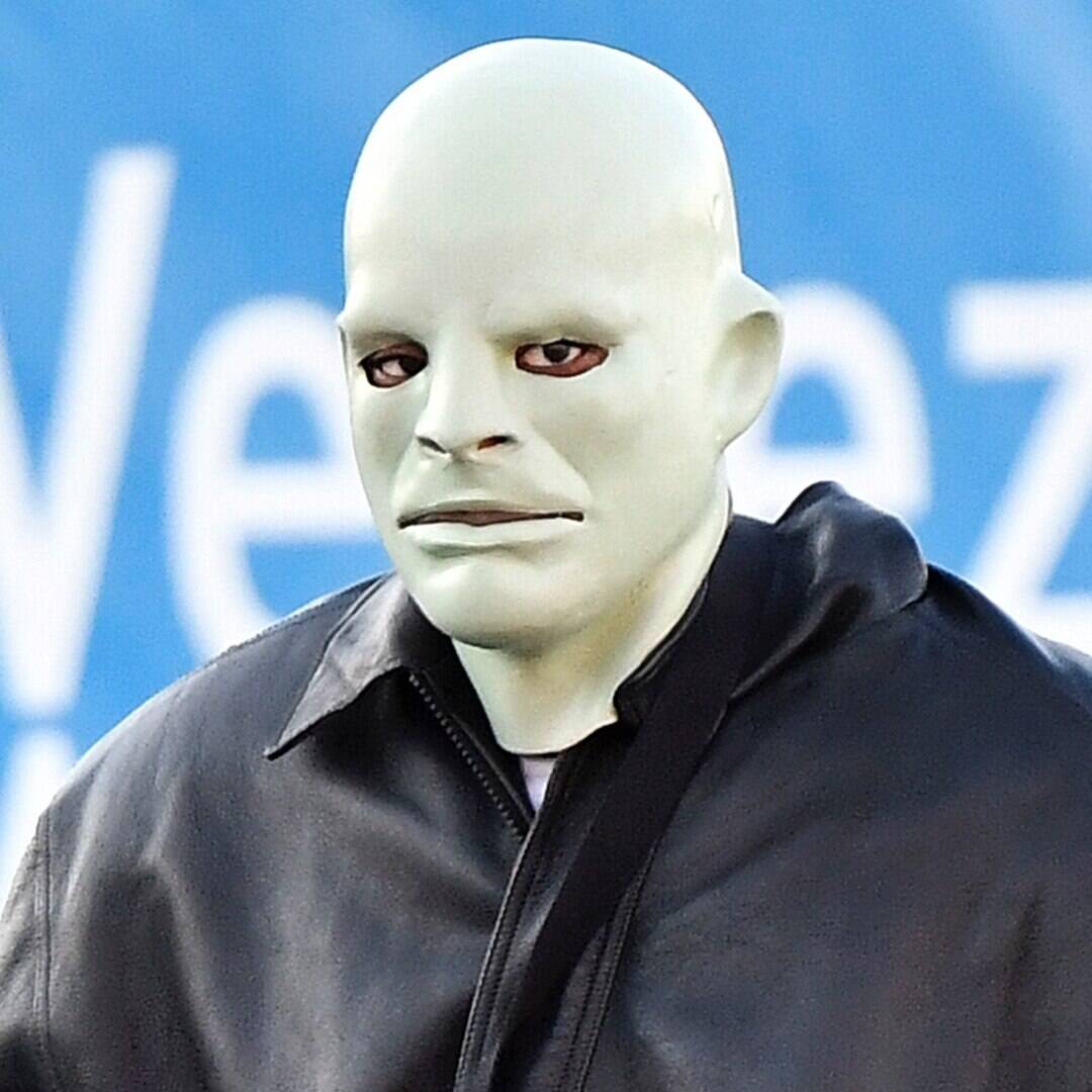 On Monday, Oct. 18, he was photographed arriving in New York City’s John F. Kennedy Airport yet another mask, this time a prosthetic one. He wore a black Balenciaga jacket and was seen getting into a cab.