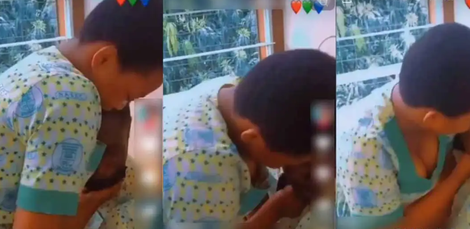 A female secondary school student has been caught on camera forcing her male classmate to kiss her during school hours.