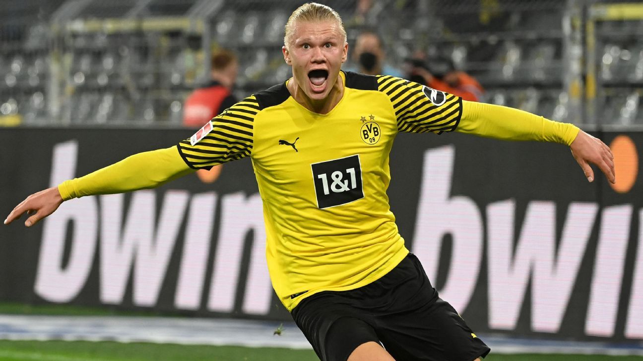 Erling Haaland will command wages of at least £30 million ($41m)-a-year if he leaves Borussia Dortmund for a new club next summer, sources have told ESPN, with Manchester United, Manchester City, Chelsea and Real Madrid all in the race to sign the Norway forward.