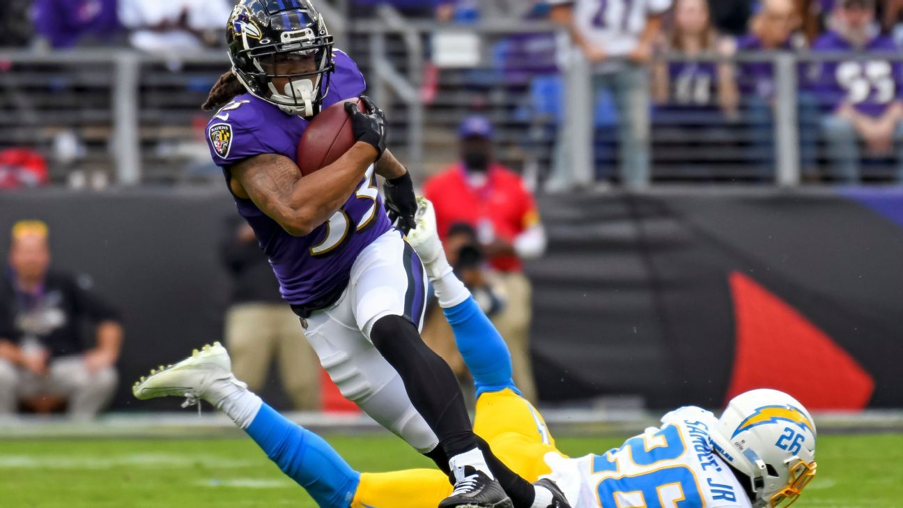 Injuries have wreaked havoc on Baltimore’s backfield all season. The Ravens’ top two backs — J.K. Dobbins and Gus Edwards — suffered season-ending knee injuries just weeks before the start of the regular season. Justice Hill became Baltimore’s third running back to sustain a season-ending injury before the season opener when he tore his Achilles.