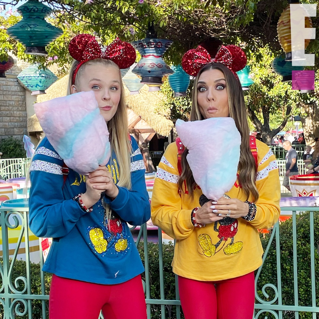 While JoJo, who is blonde, sports her partner’s hair color, both women have their locks styled in the singer’s signature high ponytail. The two are also wearing red crop tops and matching leggings, paired with denim jackets, white socks and white sneakers.