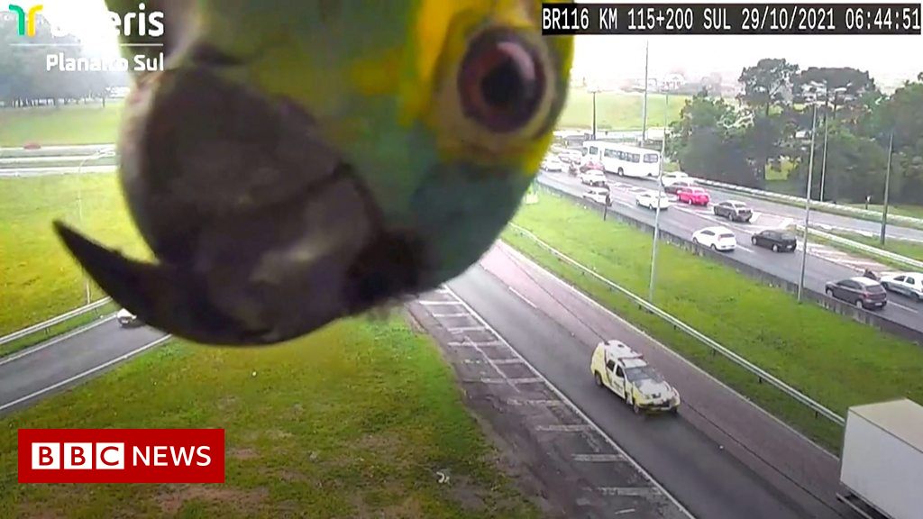A CCTV camera in Brazil was catching a bird’s eye view of the traffic, when a parrot decided to play peekaboo.