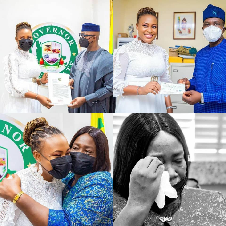 The Ogun State Government has rewarded an indigene of the state Joy Oyinlola Adesina, for her sterling academic performance at the Obafemi Awolowo University where she emerged the best graduating student ever produced in the history of the Faculty of Clinical Sciences.